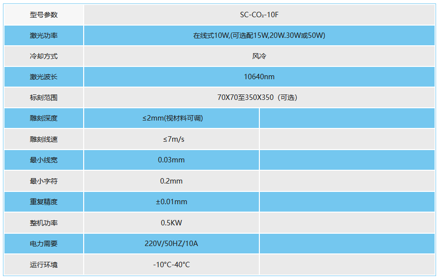 SC-F-CO2 10W風(fēng)冷機(jī)型,主要用于非金屬包裝的字符在線標(biāo)記。