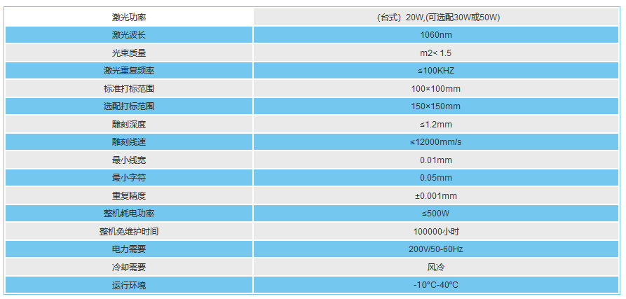 SC-Y- 20W光纖激光機技術(shù)參數(shù):
